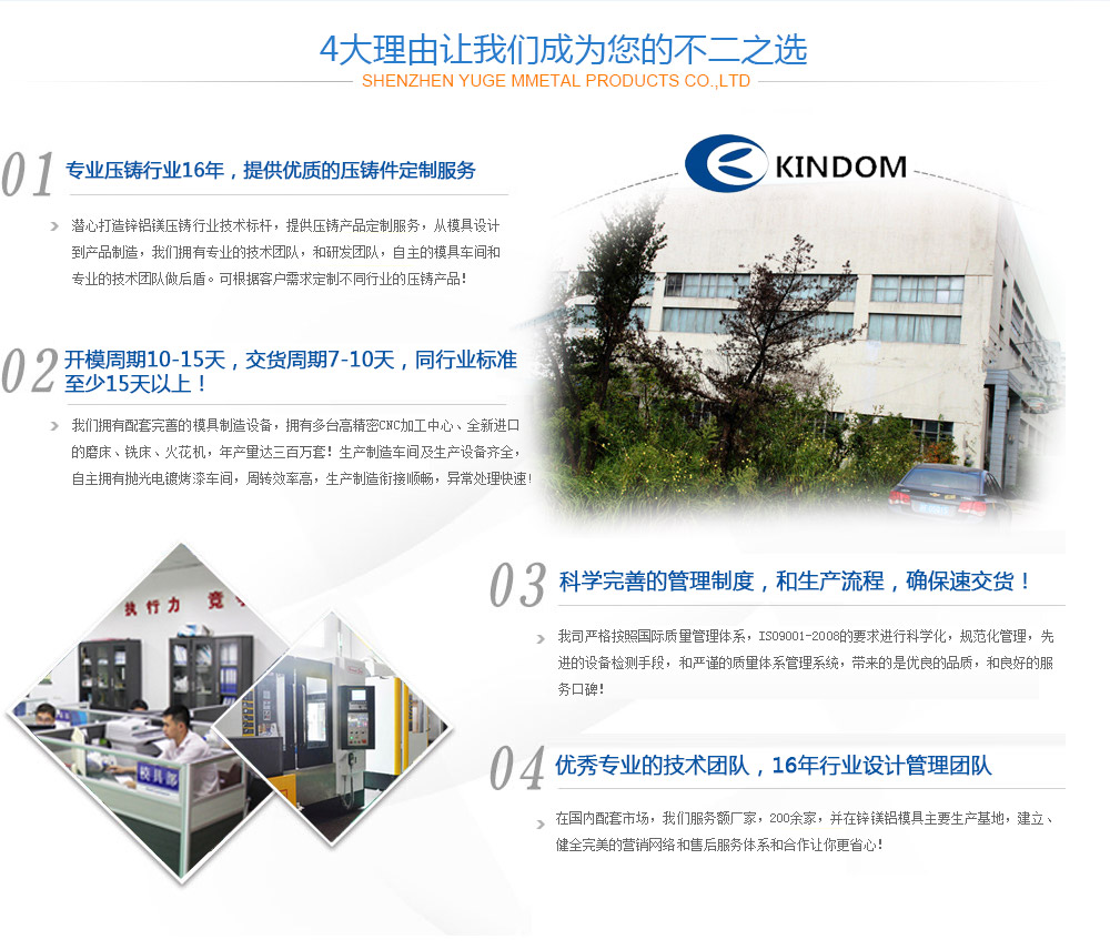 海寧長(zhǎng)命摩擦材料有限公司,創(chuàng)建于2002年,是一家集模具設(shè)計(jì)、制造、鋁合金、鋅合金壓鑄、沖壓加工、表面處理為一體的專業(yè)制造公司,為汽車、摩托車、沙灘車、燈具、網(wǎng)絡(luò)天線、監(jiān)控設(shè)備等行業(yè)提供精密壓鑄件及精密沖壓件。